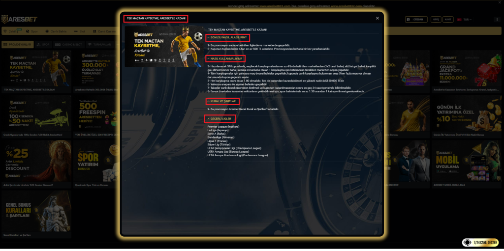 Tüm bonus ve promosyonlara Aresbet resmi internet sayfası üzerinden erişebilir, yardıma ihtiyaç duyduğunuzu düşünüyorsanız 7/24 aktif profesyonel yardım ekibimizden destek talebinde bulunabilirsiniz.